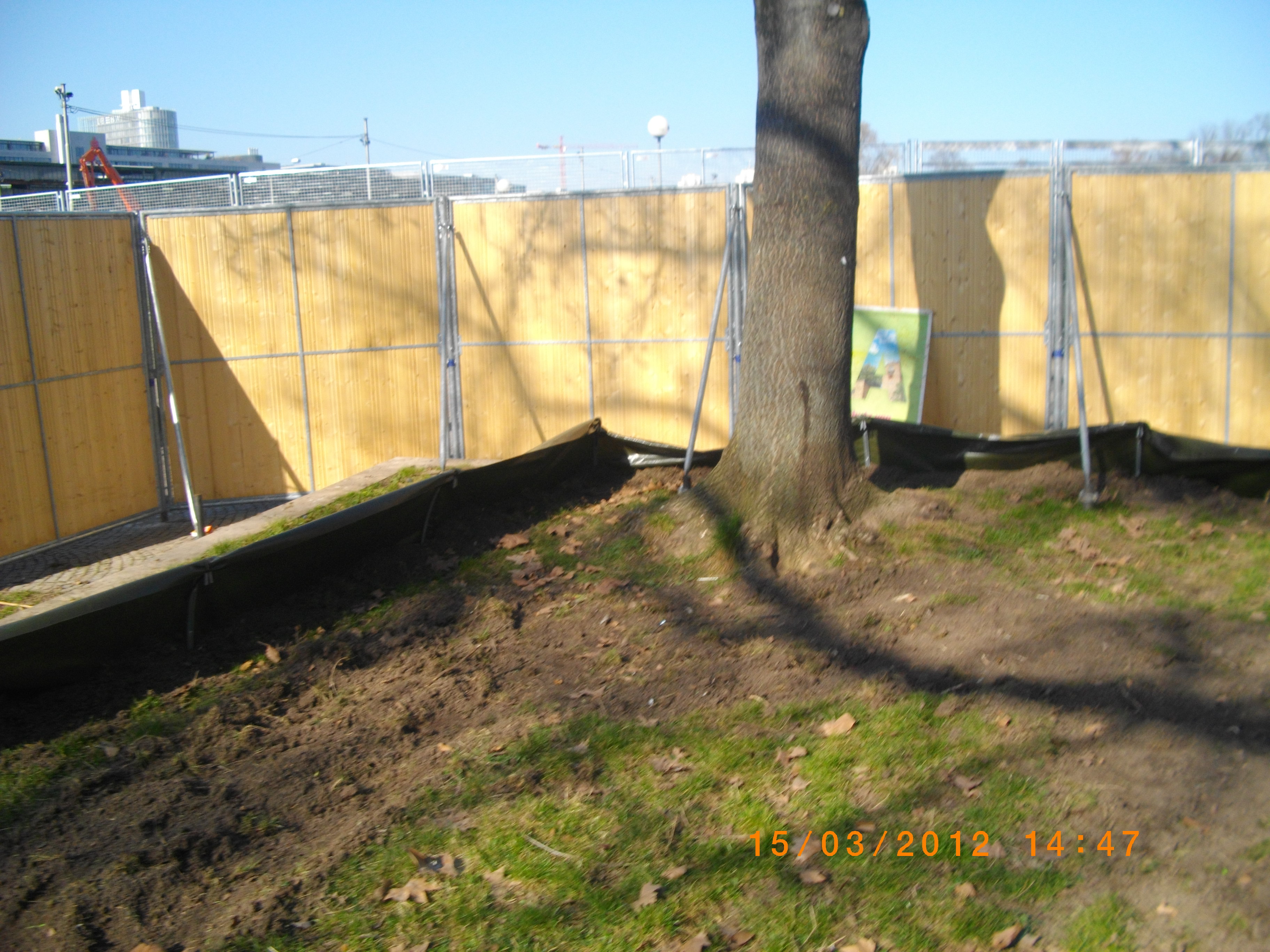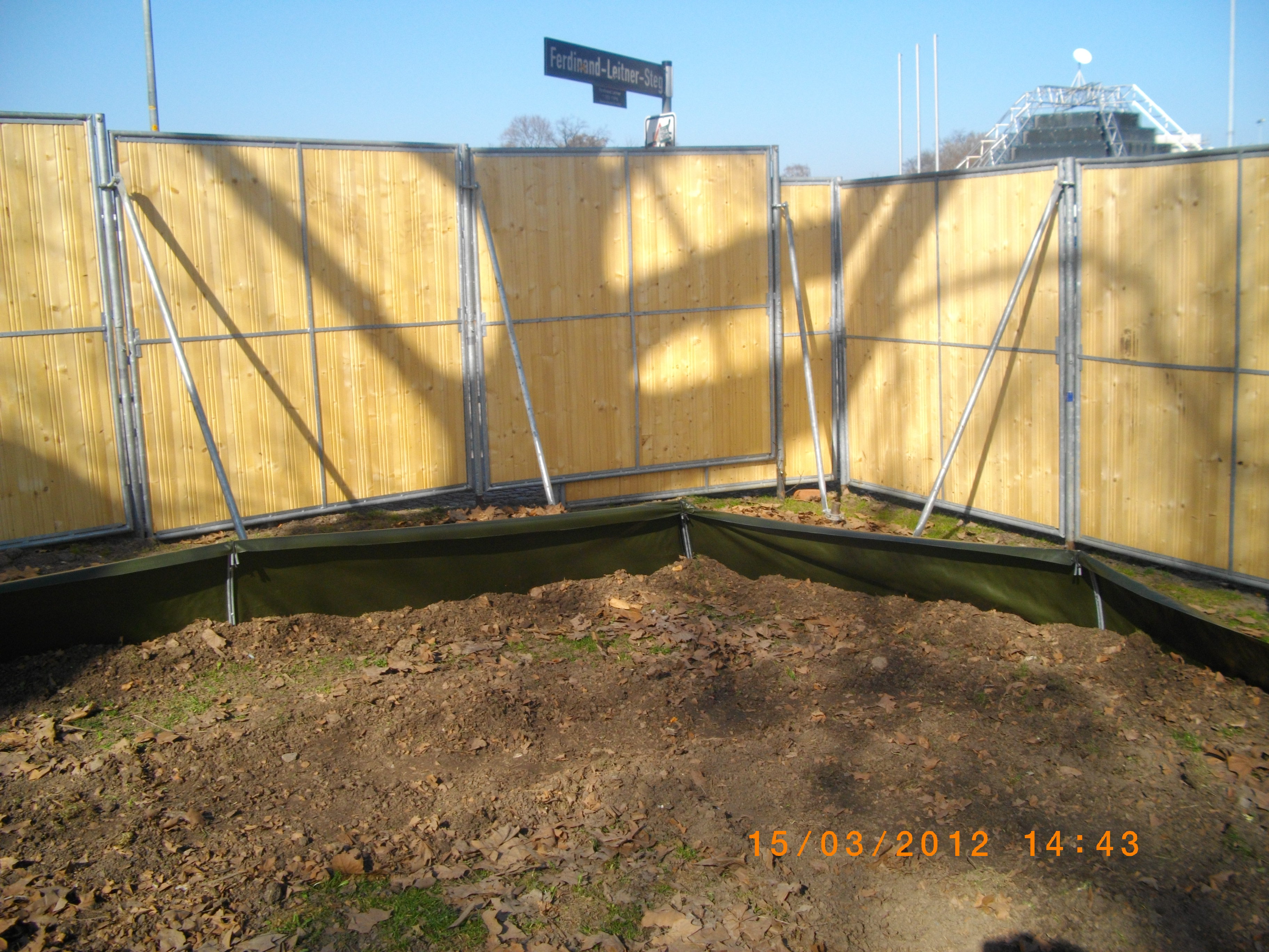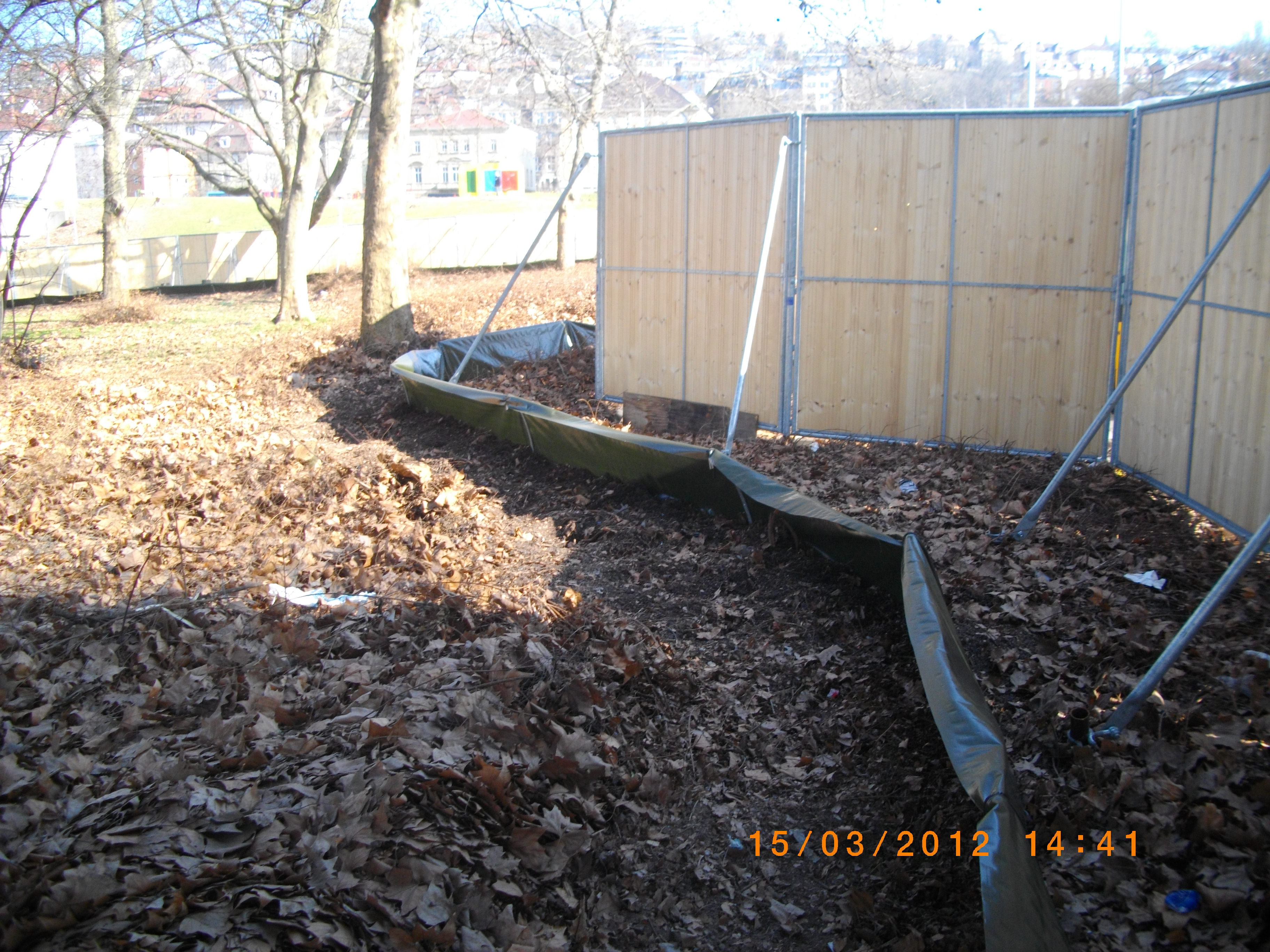 kostengünstige Alternative: Amphibienschutzzaun wird verbunden mit bestehndem Mobilzaun